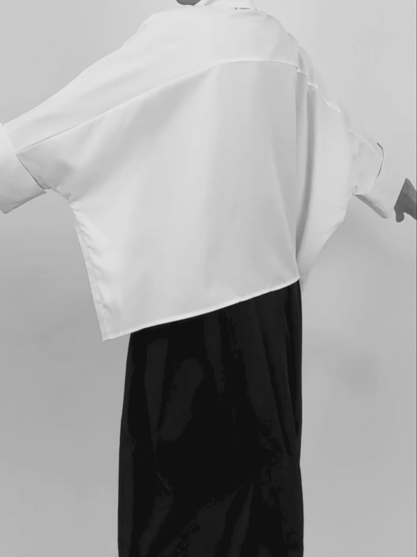 Our Volume White Shirt exudes a mood of understated elegance, with its oversized silhouette and gentle draping that is both relaxed and refined. This softly sculpted piece is simple yet sophisticated, offering an elevated take on a classic wardrobe staple. The oversized square design captures the elegance of Japanese and Korean influences, creating a modern shape that feels fresh yet timeless. The loose, comfortable fit allows for effortless movement, while maintaining an elegant form.